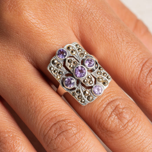 VINTAGE FINDSVendor:Vintage FindsVintage Silver Amethyst Mid Century Art Deco Ring