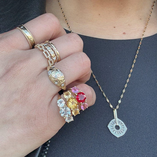Solid Gold Textured Opal Signet Ring