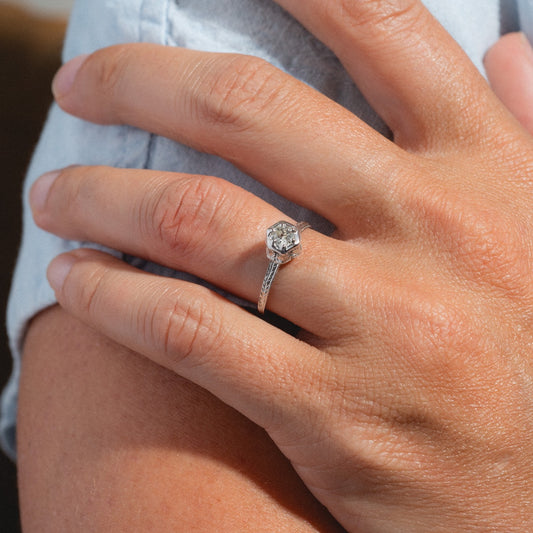 VINTAGE FINDSVendor:Vintage FindsVintage 18k White Gold Hexagon Set Diamond Ring Size 7