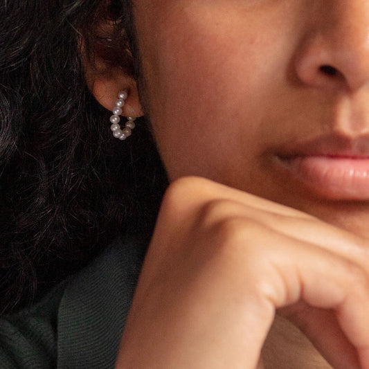 WAITLISTVendor:Family GoldSolid Gold Pearl Strand Hoops