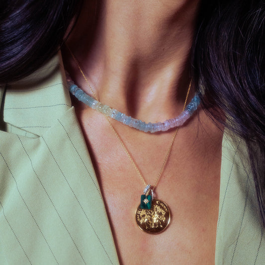Solid Gold Crystal Amulet Necklace for Manifestation