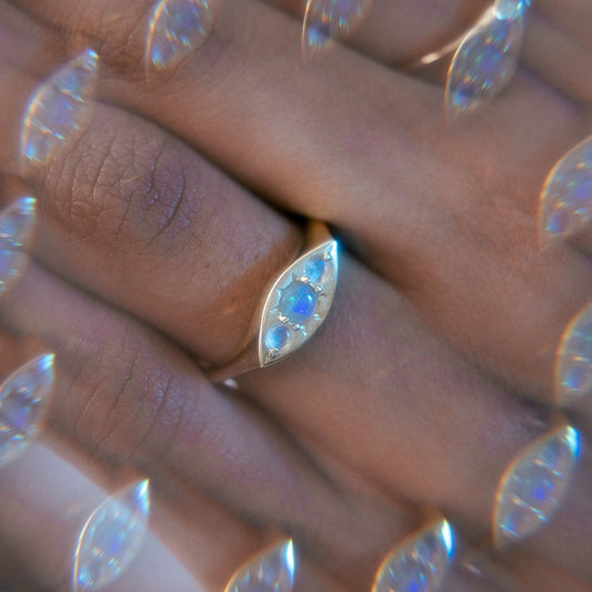 Solid Gold Opal Evil Eye Signet Ring