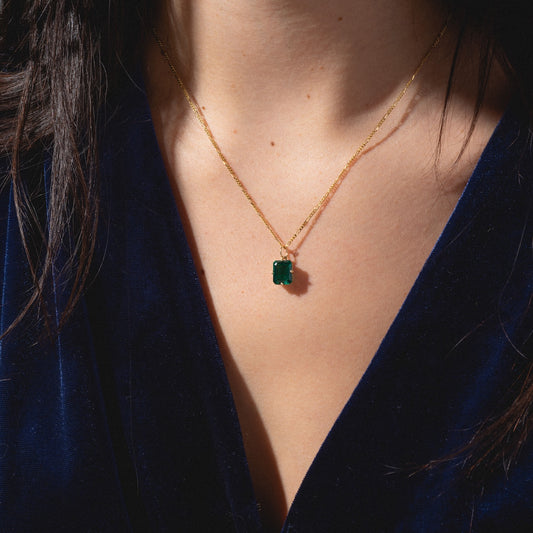 One of a Kind 14k Lab Emerald Charm with Hand Engraved Details