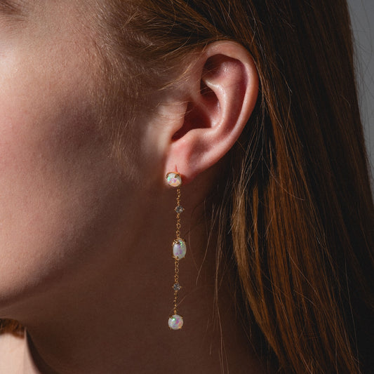 Solid Gold Crystal Ball Moonstone Drop Earrings