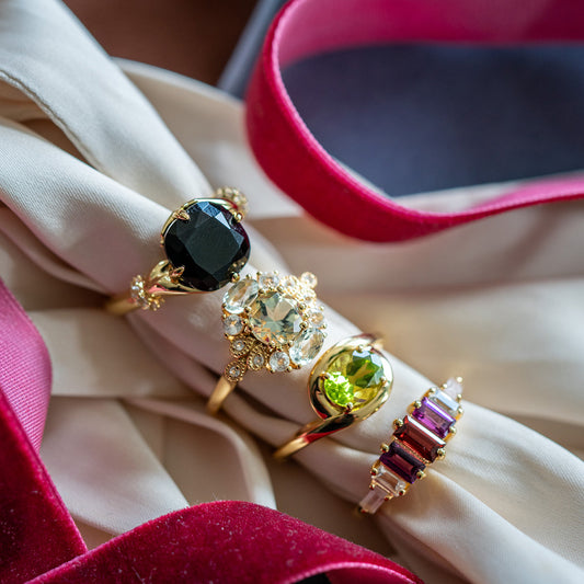 Browse our wide range of high quality gold rings from dainty to statement. Explore unique designs created with precious and semi-precious stones.
