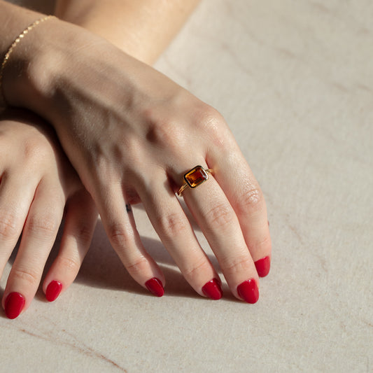 Vintage Inspired Citrine Bar Ring Sample Size 7