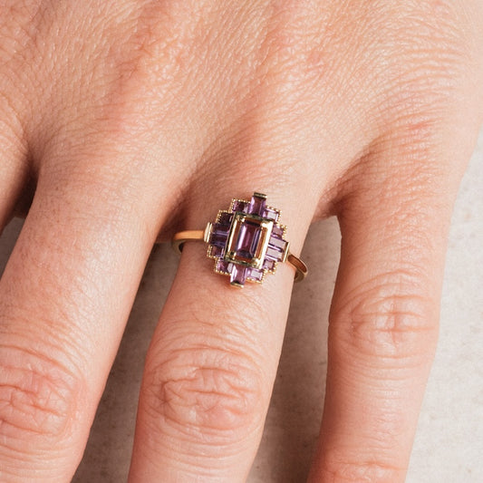 Solid Gold 2024 February Capsule Vintage Inspired Amethyst Statement Ring Sample Size 9