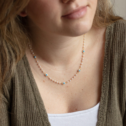 WAITLISTVendor:Petit MomentsDainty Evil Eye Pearl Necklace