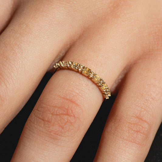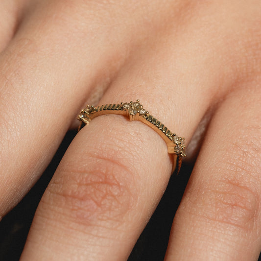 Solid Gold Salt and Pepper Diamond Ribbed Ring