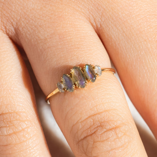 Solid Gold Gemstone Marquise Ring in White Topaz