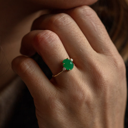 Oval Emerald Ring with Diamonds in Yellow Gold
