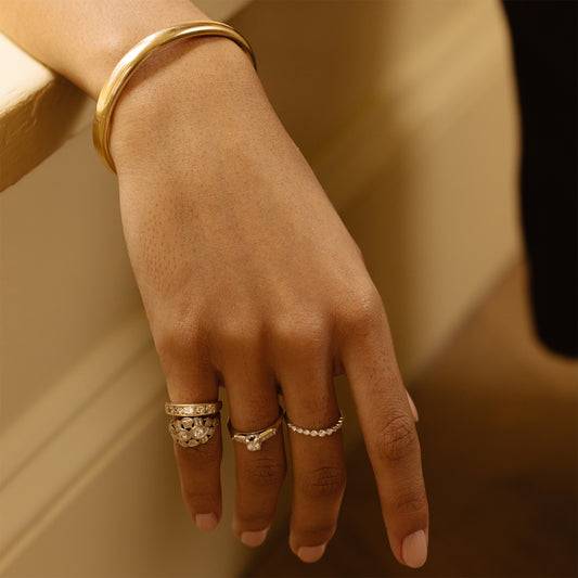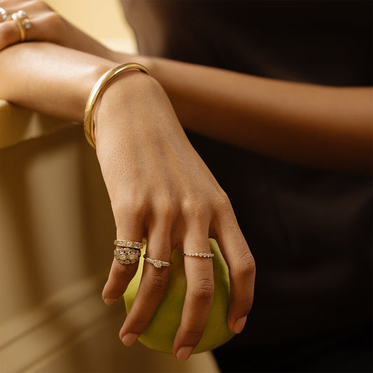 In today's quick-paced society, it's not uncommon to encounter fast fashion brands that utilize both unethical and unsustainable practices. That's why we choose to focus on emerging and independent designers. Discover our collection of pieces from designers who use recycled metal and sustainably sourced materials. Shop sustainable gold jewelry here.