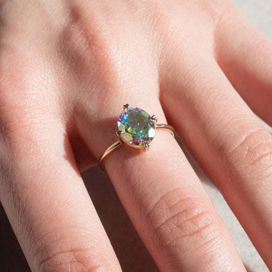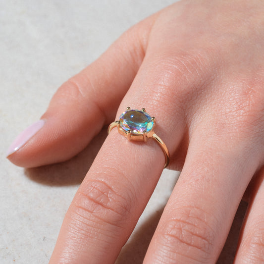 Solid Gold Aurora Angel Aura Quartz and Blue Topaz Ring Last Chance Sizes