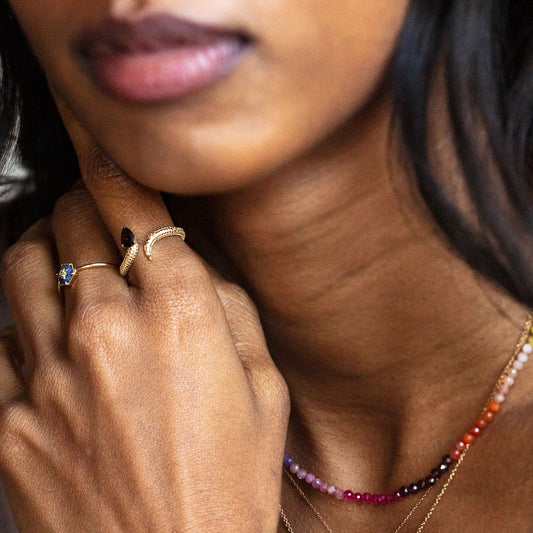 Solid Gold Smoky Quartz Snake Ring for Transformation