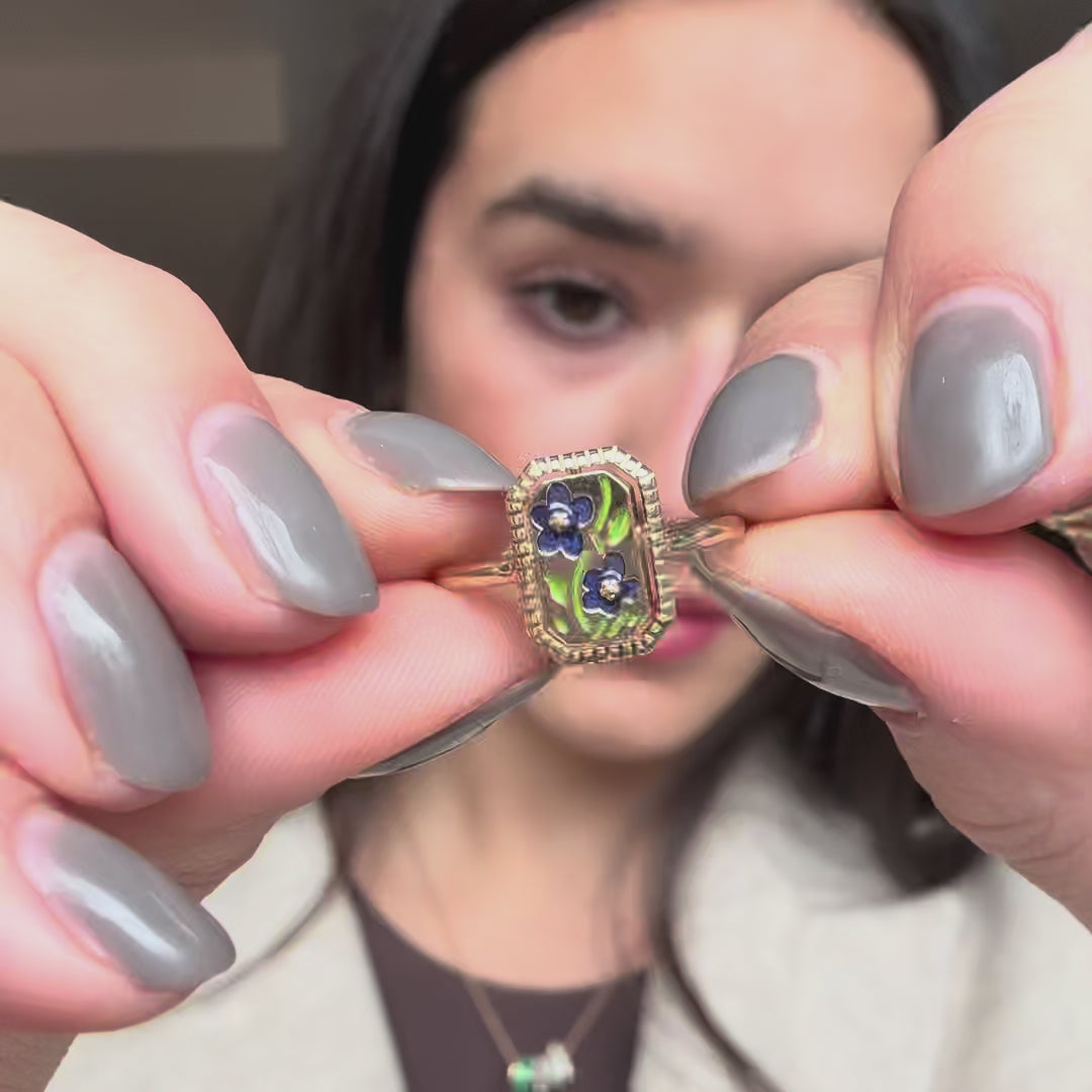 A miniature museum, a wearable story and the most gorgeous adornment all in one. The 10k Gallery Frames Enamel and Malachite Reversible Ring is crafted in solid gold and features a unique reversible signet design - a modern heirloom you can adapt to your look.
