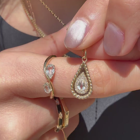 Solid Gold 2026 April Capsule Tethered Teardrop White Topaz Charm