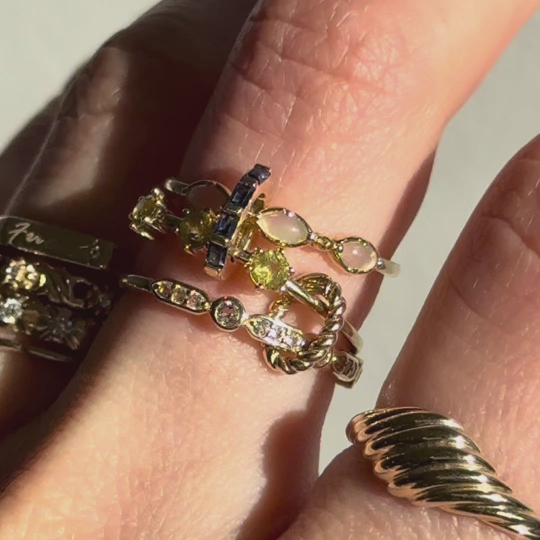 Solid Gold Bezeled Shimmer Stacking Ring